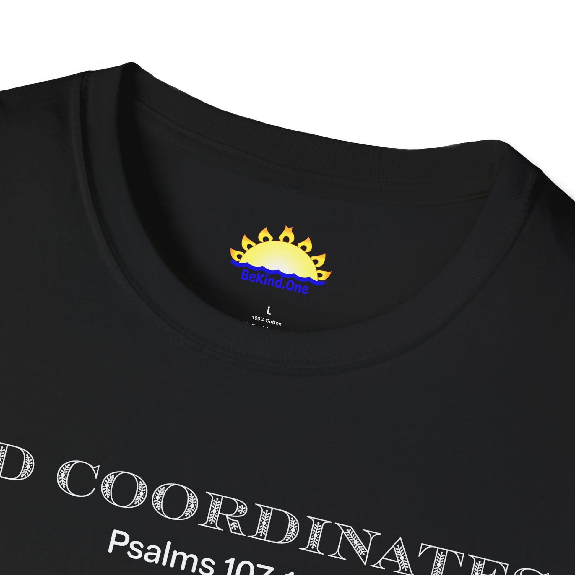 Psalms 107:1 - God Coordinates - Unisex Softstyle T-Shirt (Black/Dark Heather Grey)
